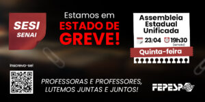 Professores e professoras do estado de São Paulo participam hoje, 23 de abril, de assembleia estadual unificada para deliberar sobre os rumos da campanha salarial e avaliar a proposta apresentada pelo SESI. A assembleia acontece às 19h30, de forma remota,...
